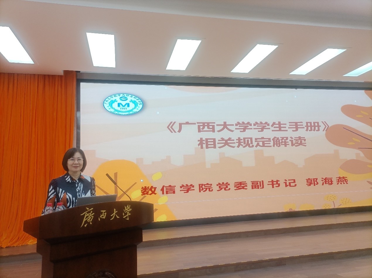 郭海燕副书记重点讲解了学生宿舍管理规定、学生考试违规处理办法、课程考勤制度、校园安全规范等太阳城app