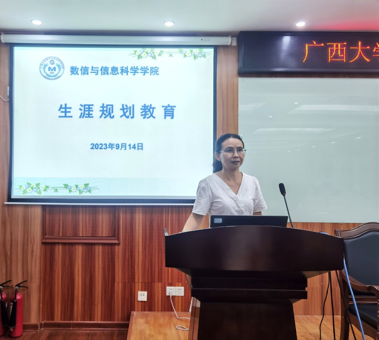 党委副书记郭海燕做学生规章制度讲解专题讲座,专任教师于毅、辅导员刘春霞等老师分别做学生生涯规划教育。