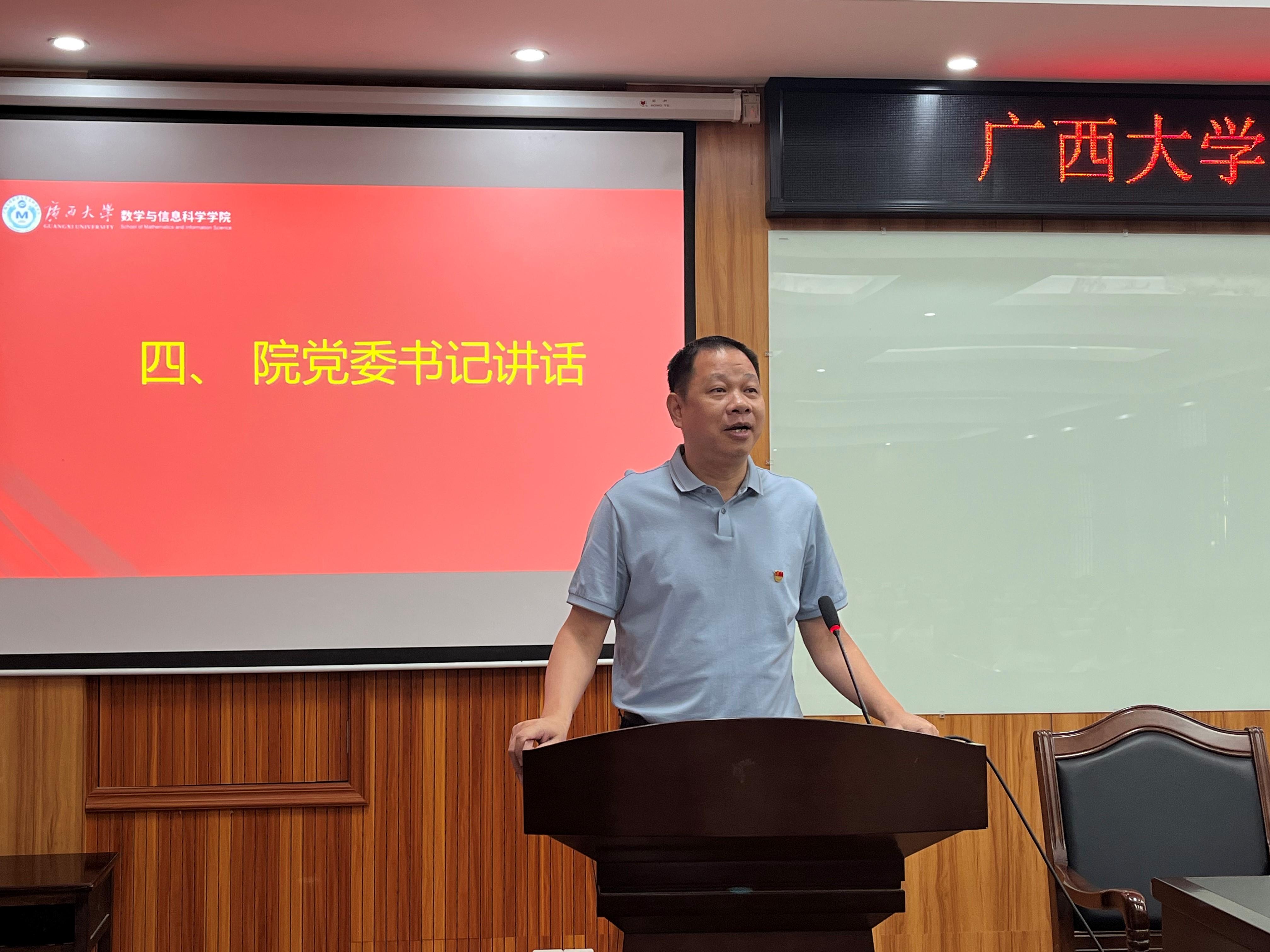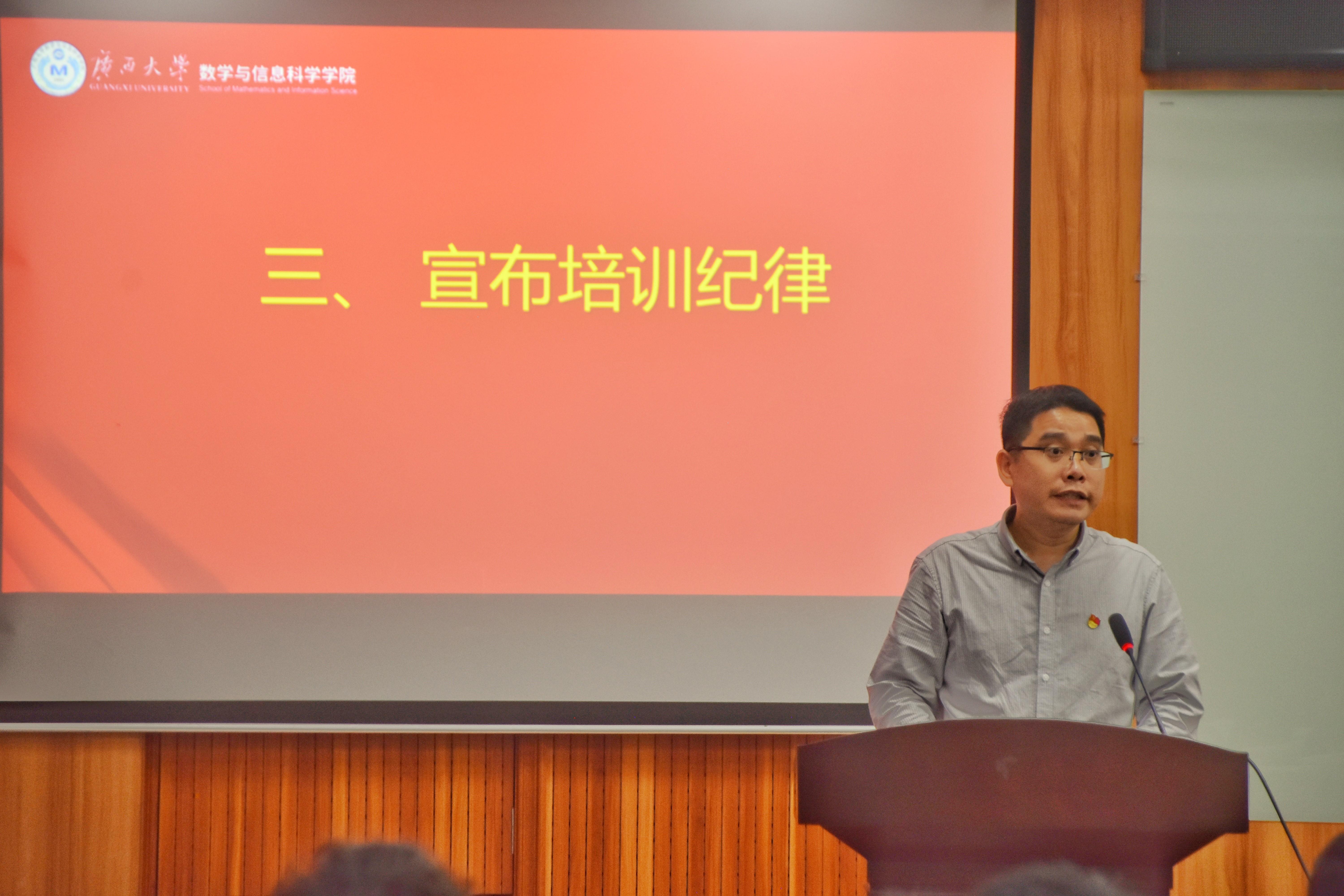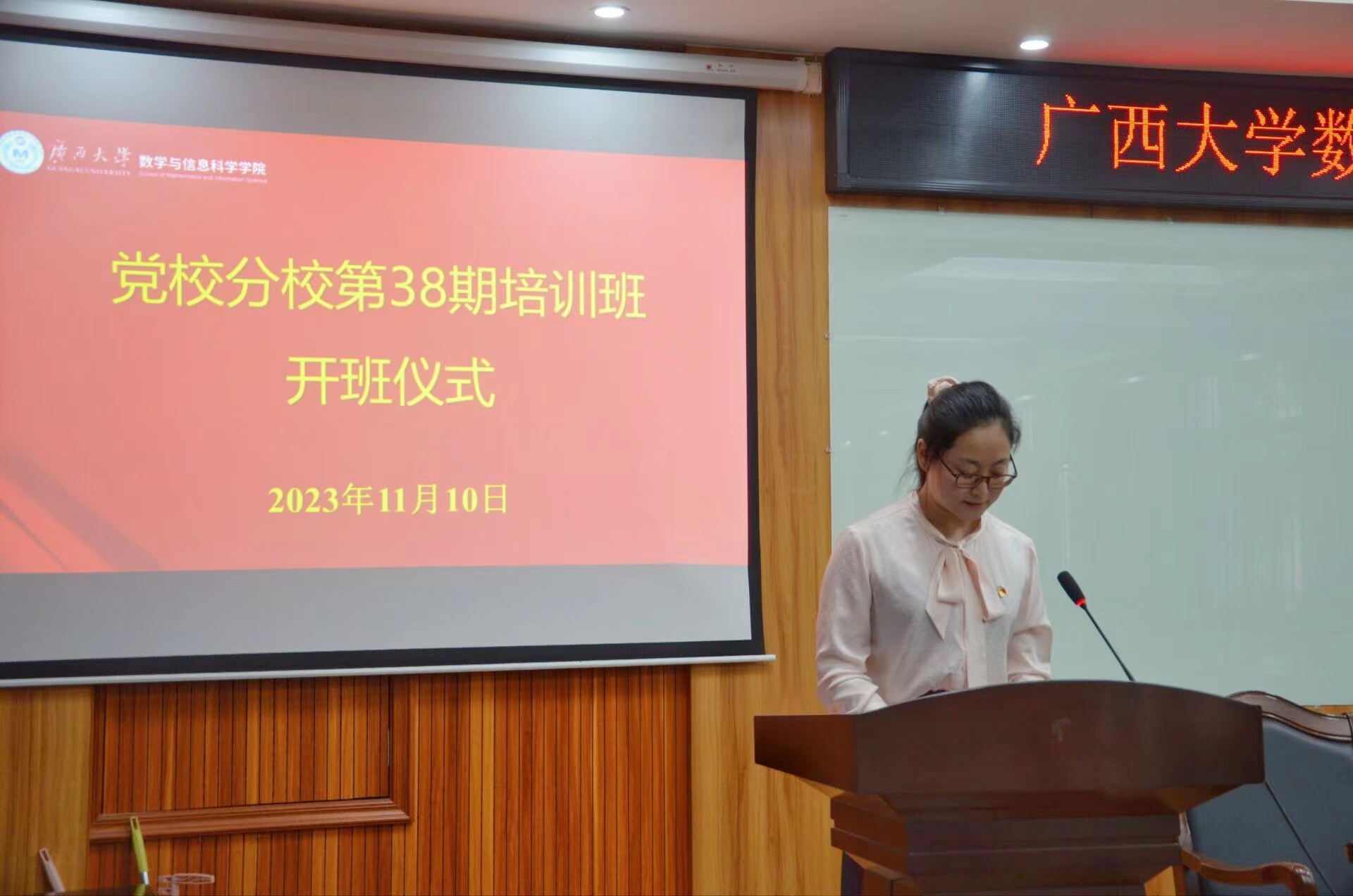 党委书记覃宪儒作开班讲话。他首先对本次培训班的开班表示祝贺,对全体培训班学员表示欢迎。他指出,大学生的健康成长关系党和人民事业后继有人,党校是同学们认识党、了解党、加入党的主要途径,更是同学们铸牢理想信念、锤炼政治品格、守住思想防线、练就过硬本领的思政课堂。他希望全体学员认真对待本次培训,严格遵守培训纪律,在铸牢对党忠诚和发扬斗争精神上下功夫。最后,覃宪儒书记预祝本期校分党校培训工作圆满成功!