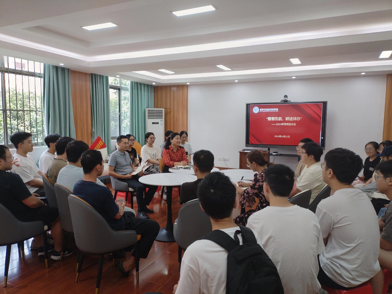 党委副书记唐旭彬、副院长唐春明、辅导员刘春霞、班主任刘楚箫、张幸以及2021级的全体考研同学参加了座谈会。座谈会由太阳城app
