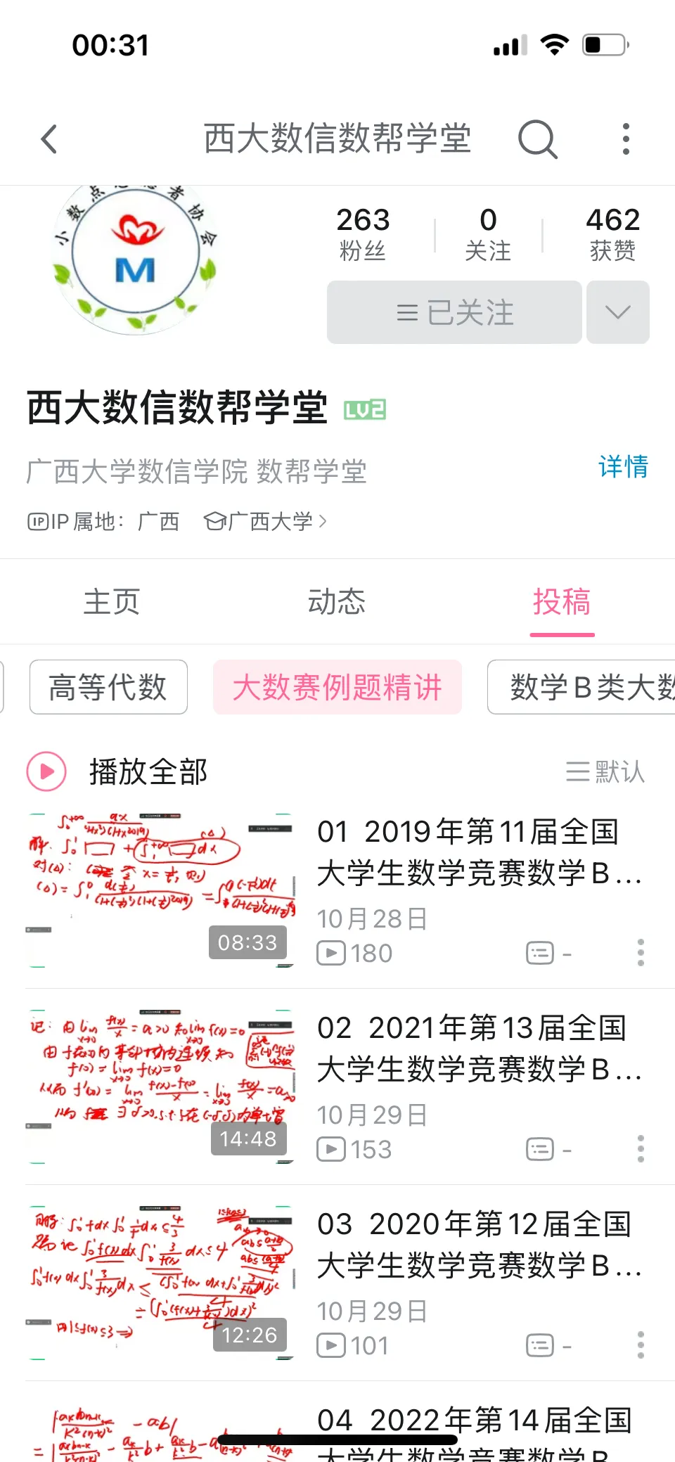 团委实施,以学生骨干为主体的助学帮扶项目。自创建以来,该平台凭借其优质的大学数学解题思路,吸引了众多同学的关注。目前,累计关注人数260余人,视频总播放量突破25000次。