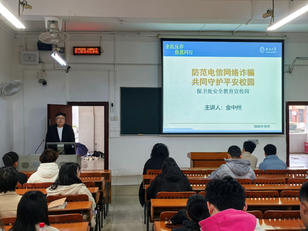 的典型电信诈骗案例梳理成11大类典型诈骗方式,向同学们详细讲解了电信网络诈骗违法犯罪行为的特征、本质特点和预防措施,普及和大学生紧密联系的网络购物、冒充客服、兼职刷单、网络贷款诈骗等相关防骗知识。