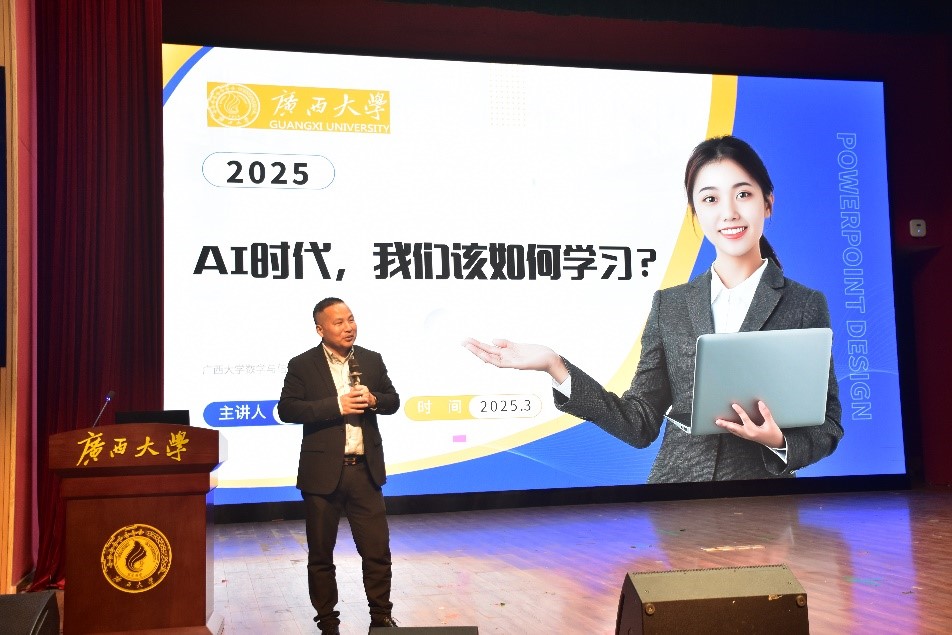 全体大一、大二新生做专题讲座。他从带领学生们一起学习使用以ChatGPT、DeepSeek为代表的AI工具的直观方式入手,引导学生端正重塑知识获取方式的态度,从而理性认识人工智能技术对教育生态的颠覆性影响。他结合数学专业优势,并以如何合理利用DeepSeek为例,启发数学专业学生在技术浪潮中找准定位,坚定信心,培养数学思维,充分认识到“AI是辅助工具,而非替代者。数学思维的核心在于逻辑推演与创新突破,学生应善用AI处理重复性计算,同时聚焦高阶思维培养,如跨学科整合、批判性分析与学术探索。人工智能可以比人类更快计算、更准确记忆、更高效地处理信息,人类思维能触及抽象、哲学、艺术和情感的深邃领域,能超越物理世界的局限,无限创造。人类思维将永远高于人工智能,且不可能被任何智能完全复制。”他结合数学学习的实际特点,以实际案例启发同学们合理利用AI技术,提升数学学习效率,掌握复杂的数学概念,培养独立思考能力。最后,他建议同学们关注社会化能力与幸福生活能力的塑造,鼓励参与科创、艺术、体育等实践活动,实现个人全面发展。