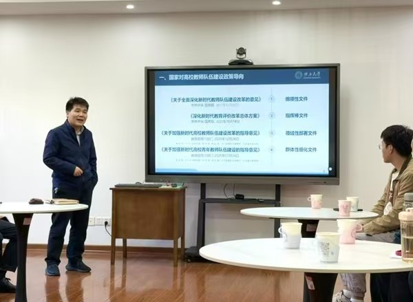 教师教学发展中心专职副主任胡立坤到场与青年教师交流,为他们作“构建多维支撑体系,激发教师发展活力:高校教师专业成长的系统规划与发展路径”专题讲座。