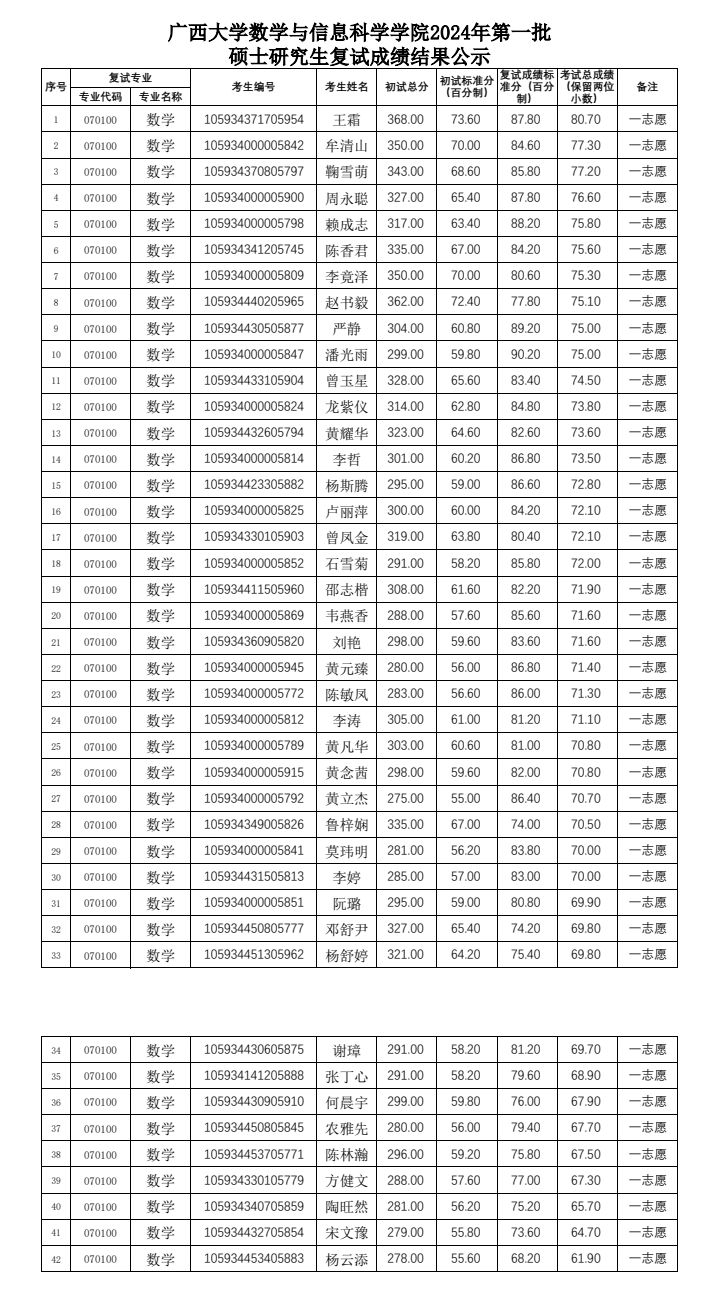 太阳城app 2024硕士研究生第一批复试考生名单(第一志愿)