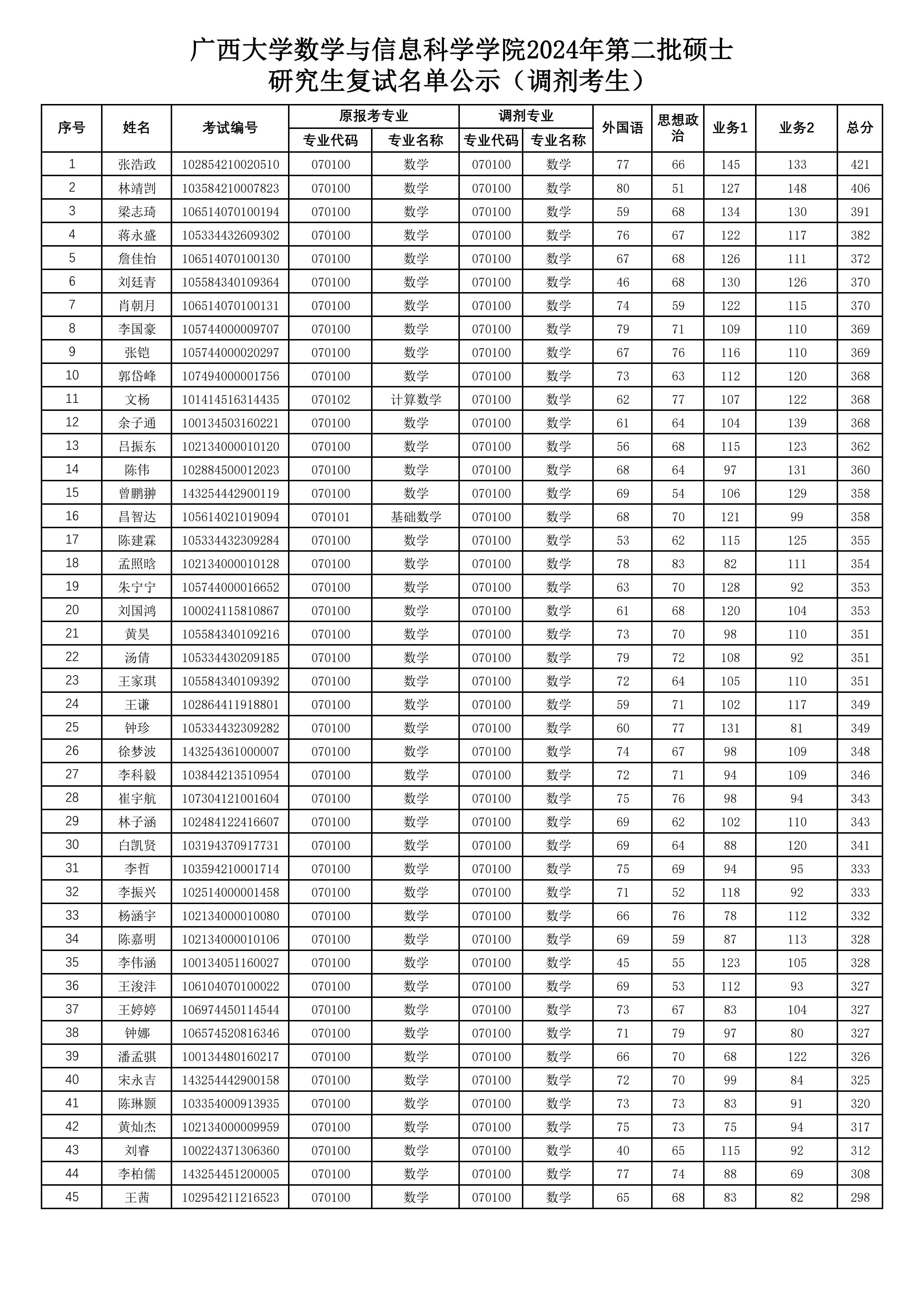 太阳城app 2024年第二批硕士研究生复试名单公示(调剂考生)