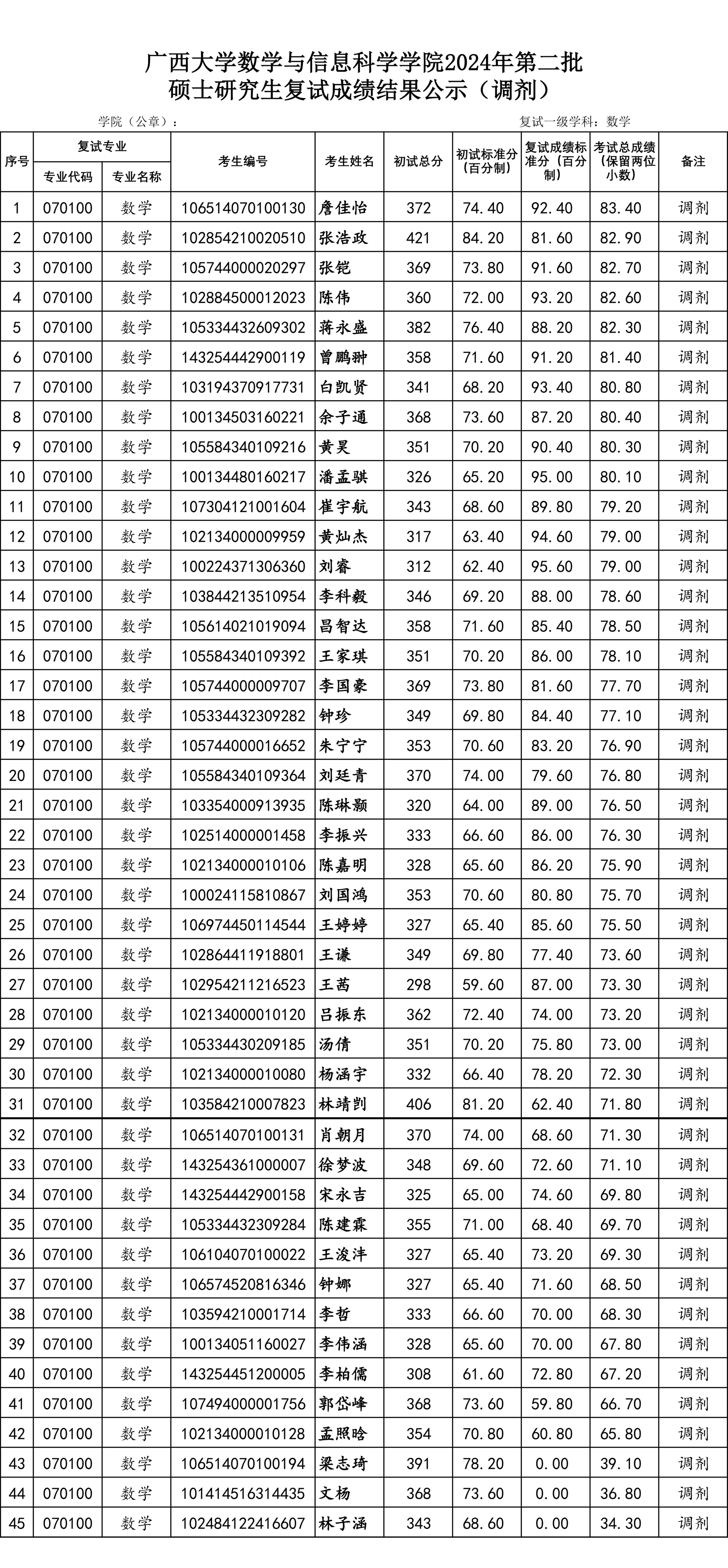 太阳城app 2024年第二批硕士研究生复试名单公示(调剂考生)