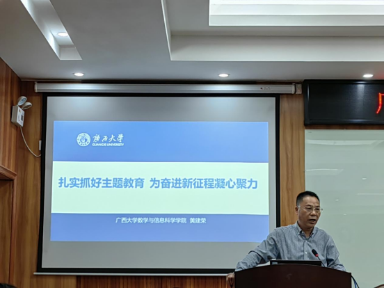 党委书记黄建荣在109报告厅为全体教工党员讲授了题为“扎实抓好主题教育 为奋进新征程凝心聚力”的专题党课。