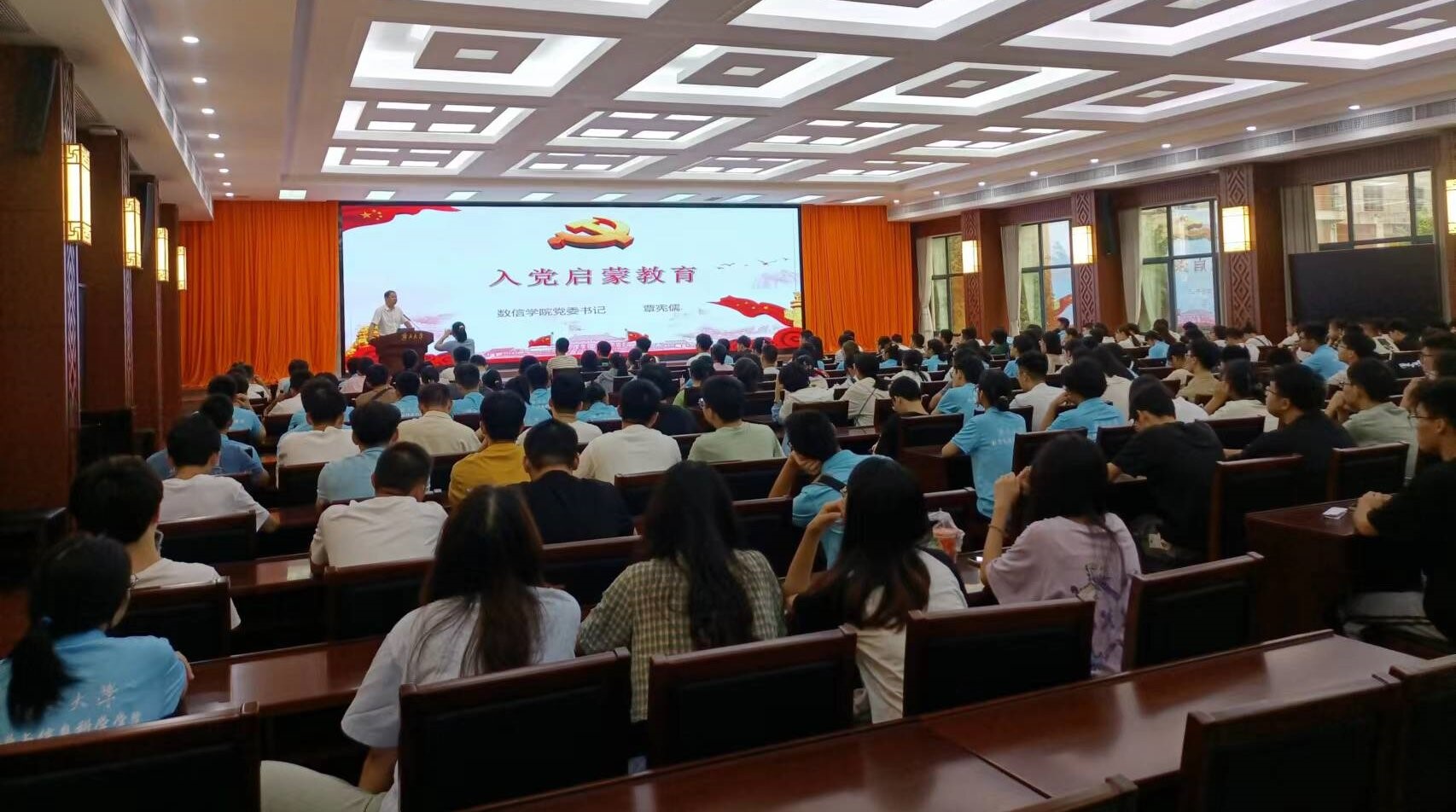 党委书记覃宪儒在君武馆玉林厅为2023级新生做入党启蒙教育。