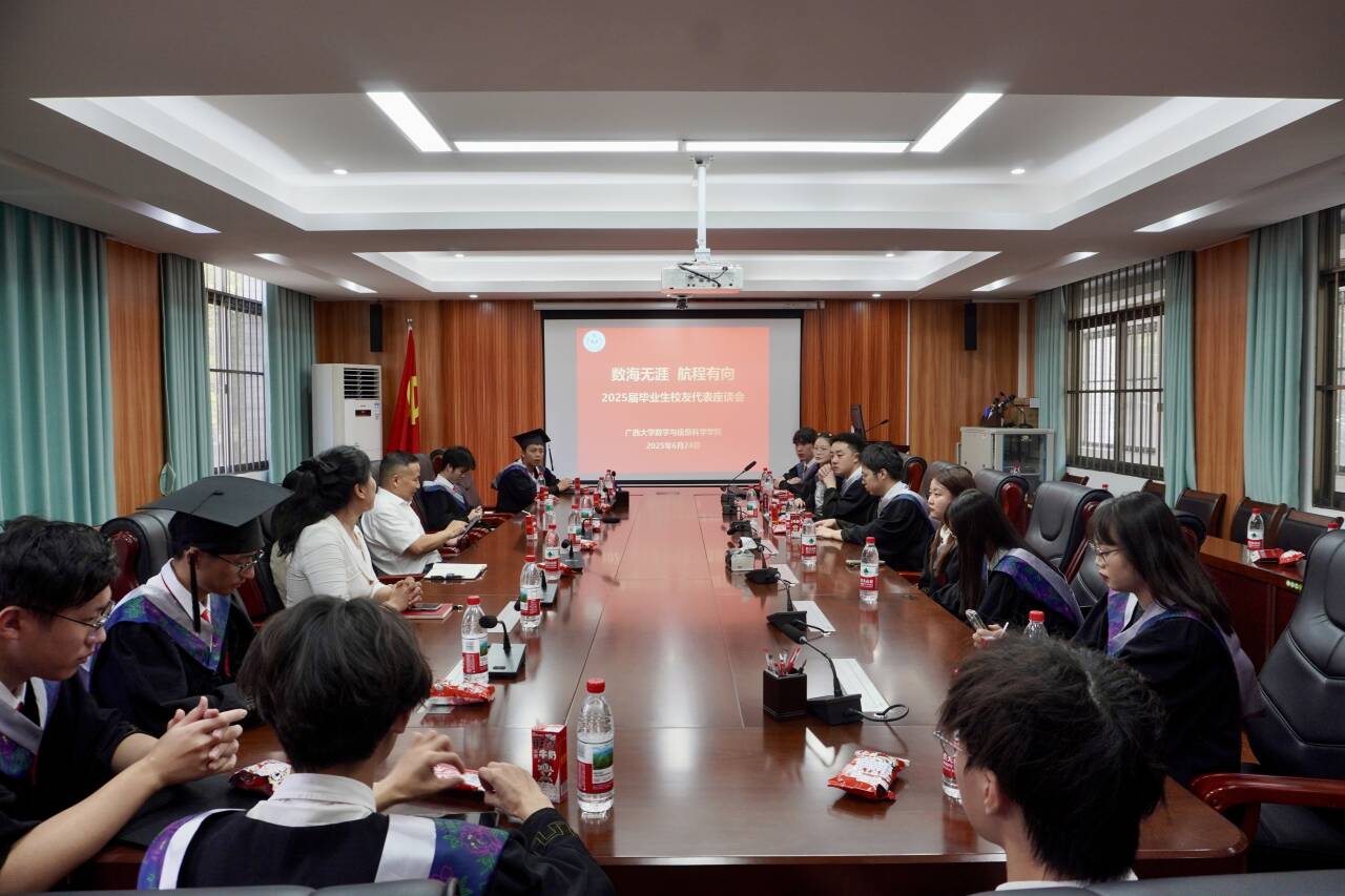 在2025届毕业生校友代表座谈会上,院长郭真华首先祝贺同学们顺利毕业,将作为又一批广西大学数信太阳城app