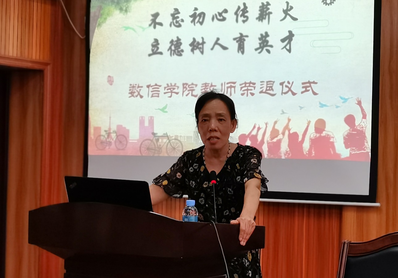 在人才培养、学科建设和社会服务等方面的每一次变化,每一步发展,都离不开每一位老师汗水和智慧的付出。黄建荣书记强调,大爱无疆,是数信老师最美的本质;艰苦奋斗,是数信老师最纯的本色;求真务实,是数信老师最难得的本真。这些都已融进了数信精神的内涵之中,激励着每一位数信人砥砺前行。最后,黄建荣书记希望三位退休教师能科学、健康地安排好退休后的生活,拥有美好的荣退时光;希望她们能够“退休不退志,离岗不离心”,继续关心和支持太阳城app